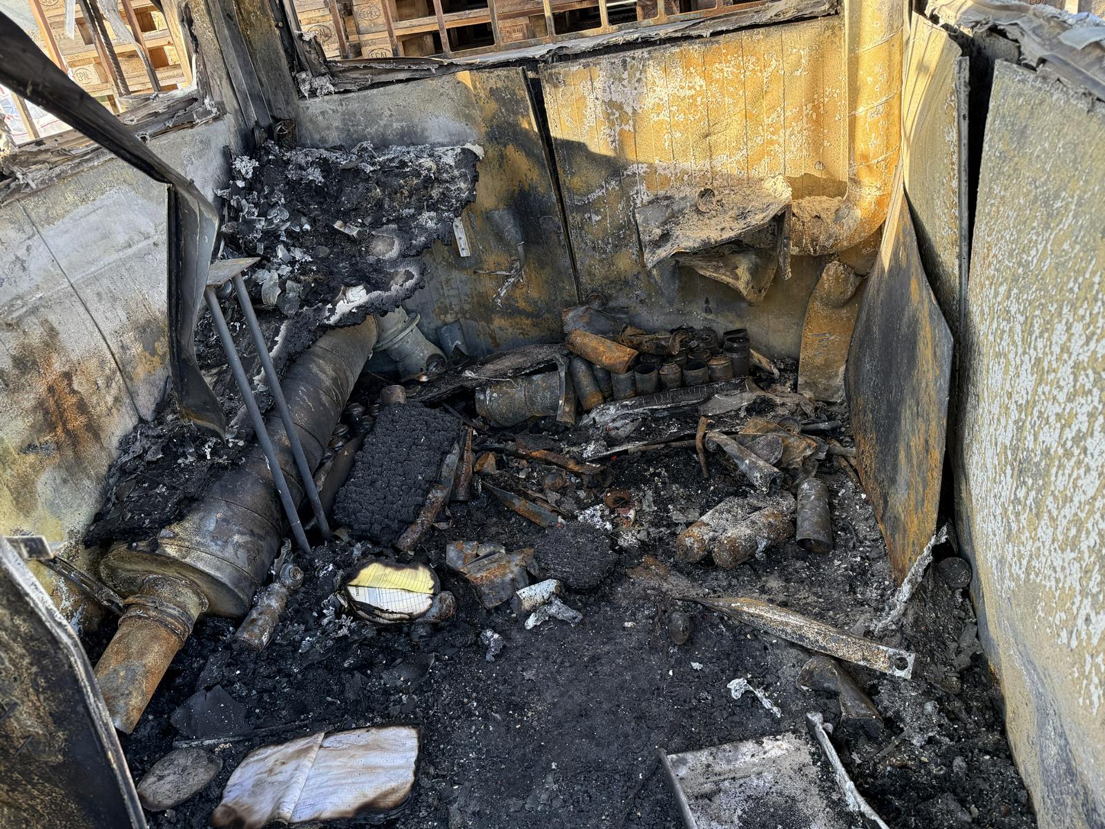 Zerstörter Technikraum nach Brand – geschmolzene Leitungen und massive Verrußung