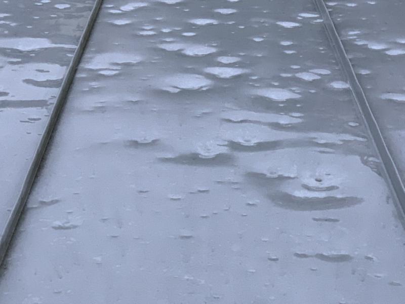 Hagelschäden an einer Blechdachdeckung – Dellen gut erkennbar