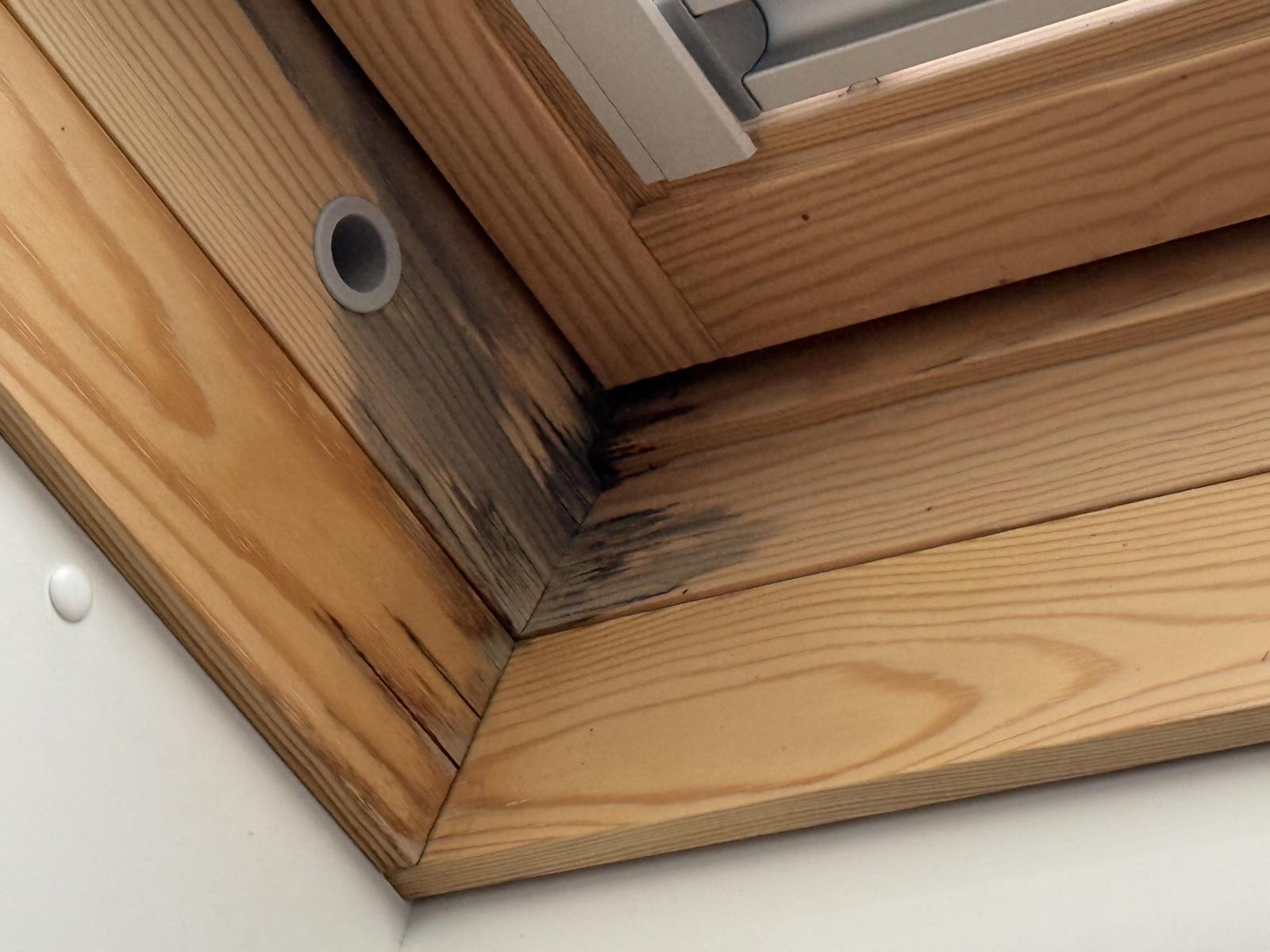 Wasser- und Schimmelschaden am Dachfenster – typische Verfärbungen durch Feuchtigkeit